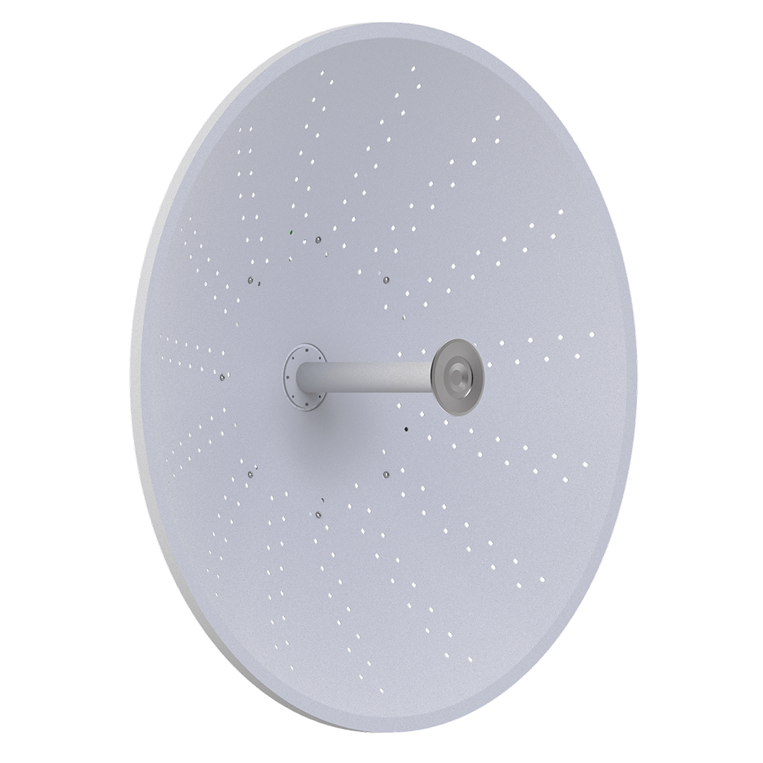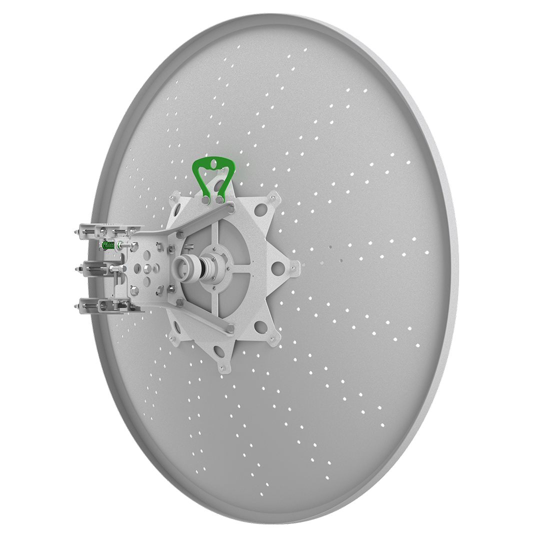 The 34dBi antenna from Phase, with a diameter of 105 centimeters, is designed for data transmission over long distances of up to 80 kilometers. The mounting kit for this antenna is an easy-to-install type (Easy Mount Kit), and the base is constructed using the Geomet coating process, which offers enhanced resistance to corrosion and wear. This antenna is specifically designed for Mimosa X series radios, such as C5x and B5x, and connects to these radios without the need for a pigtail cable.